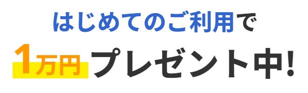初回利用で現金1万円プレゼントのキャンペーンの終了日の記載がないので突然に終わる可能性も考えられます。